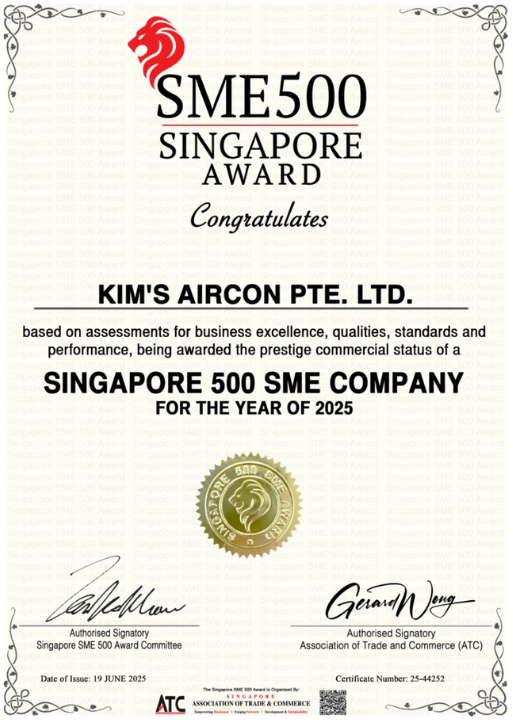 Kim’s Aircon has been awarded the Singapore SME 500 Award 2025.